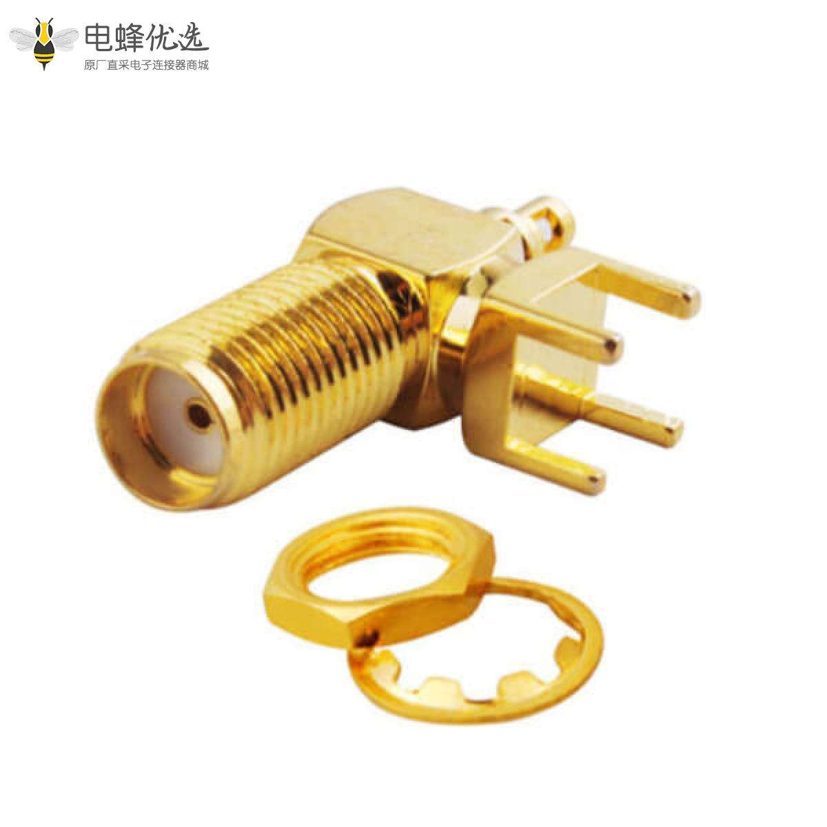 SMA连接器,母,弯式,50ohm,PCB,线端,焊线,镀金,铜;