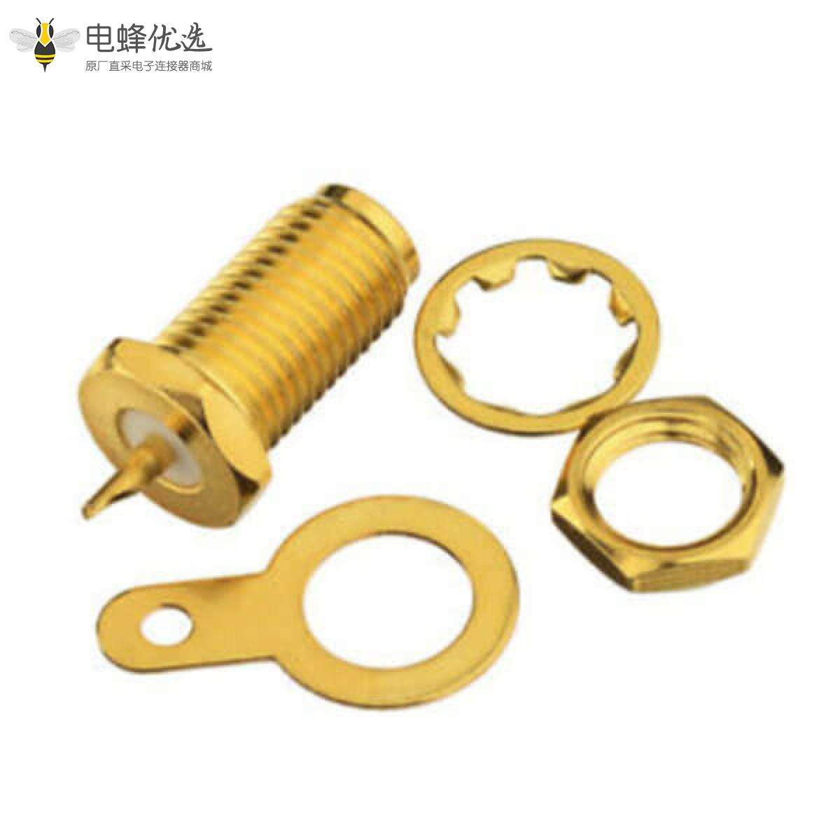 SMA连接器,母,直式,50ohm,前锁板,,线端,焊线,镀金,铜;