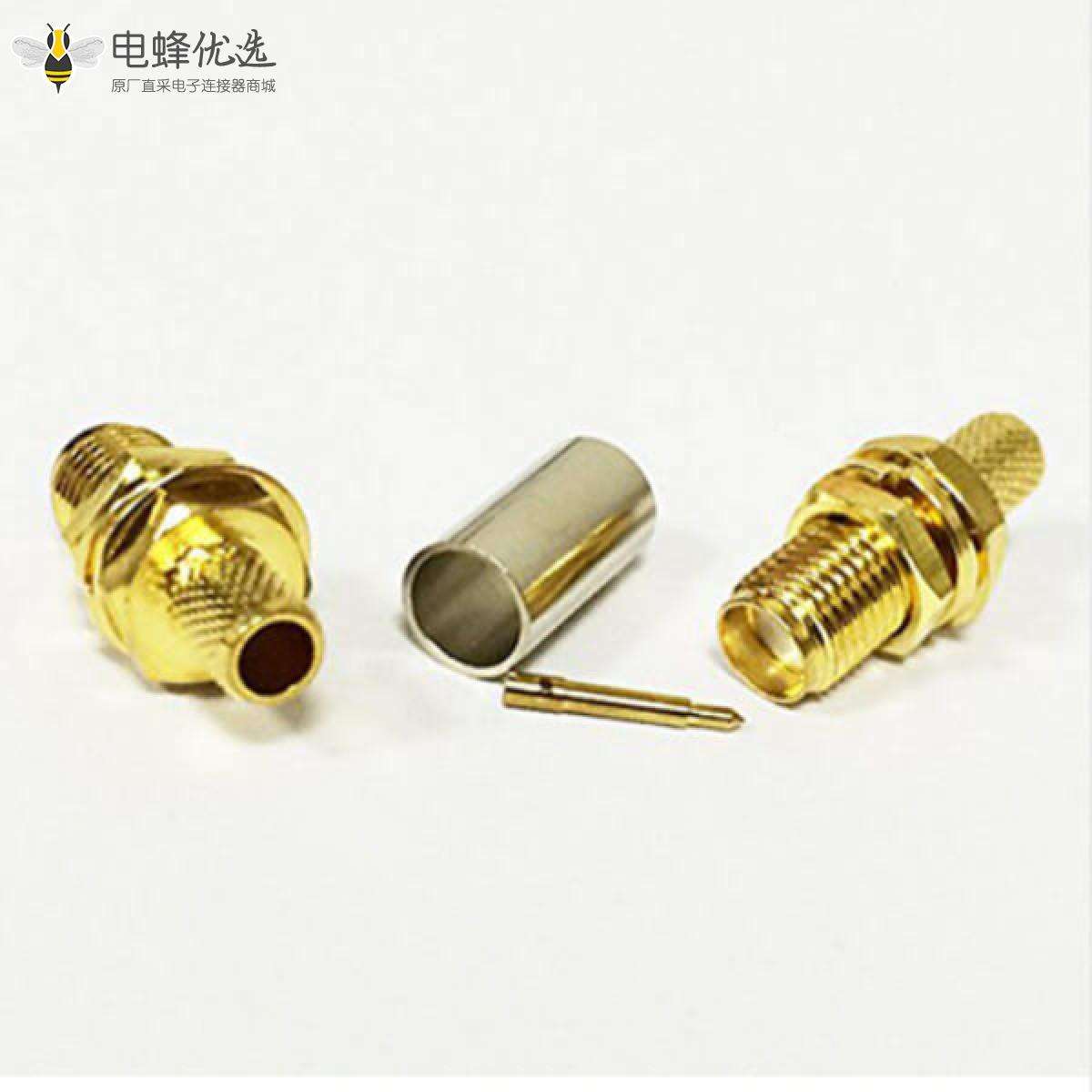 SMA连接器,母,直式,50ohm,4孔法兰,线端,压接,镀金,铜,RG;
