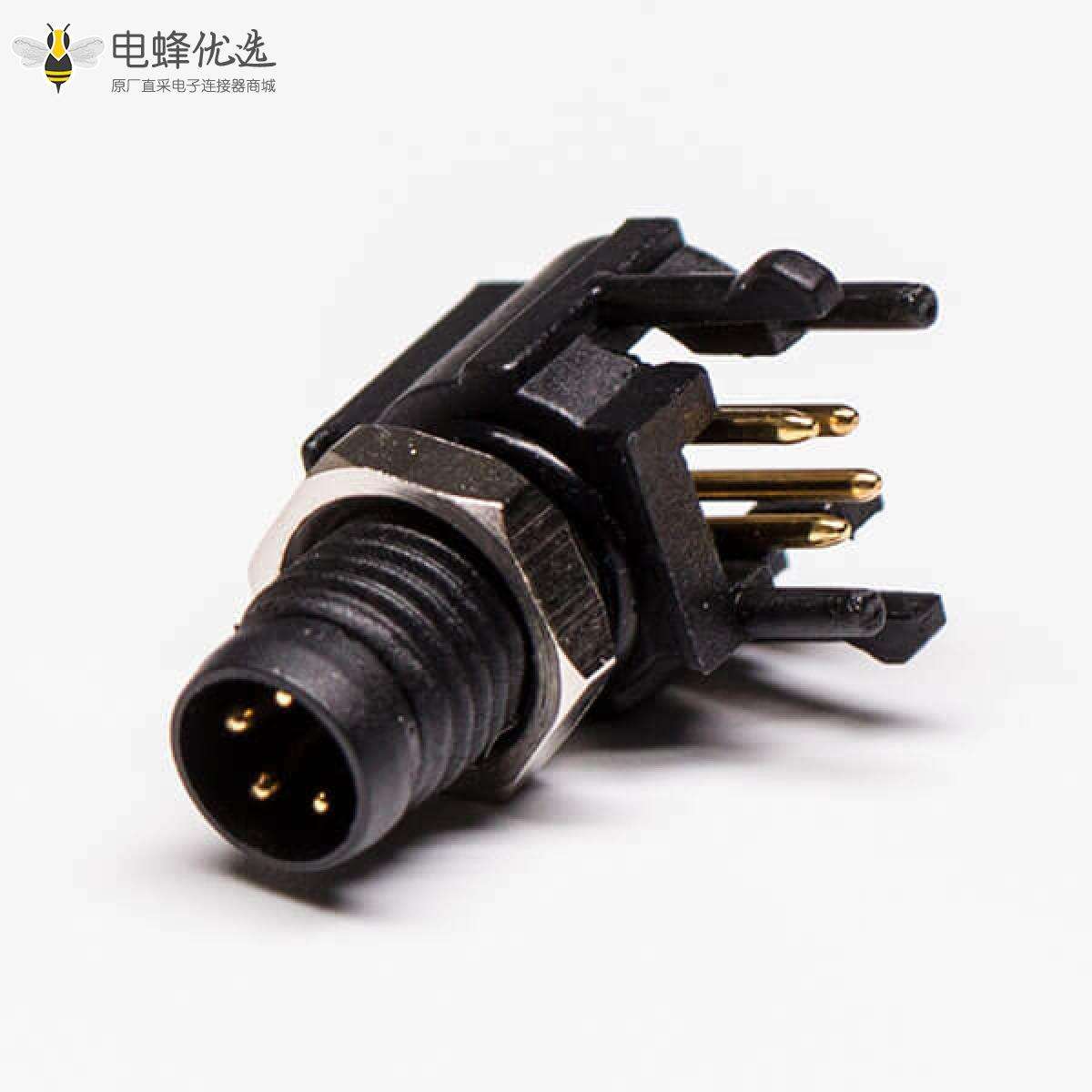- M8, 4芯, A编码, 板端插座, 公, 前锁板, 弯的, 插板, 不带屏蔽 ;