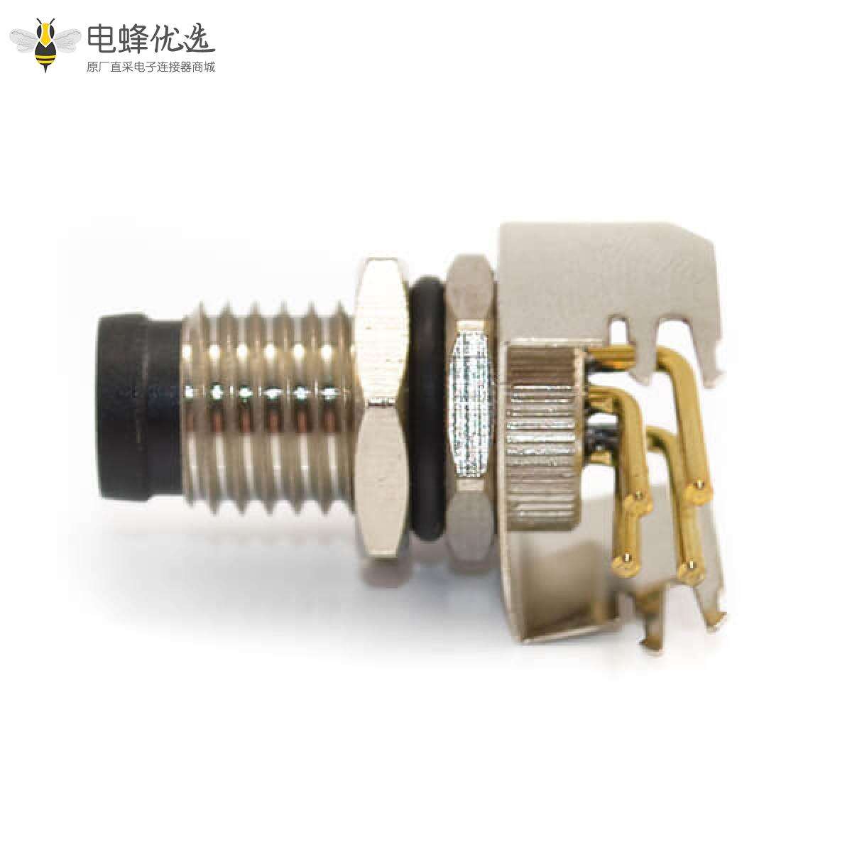 - M8, 4芯, A编码, 板端插座, 公, 前锁板, 弯的, 插板, 不带屏蔽 ;