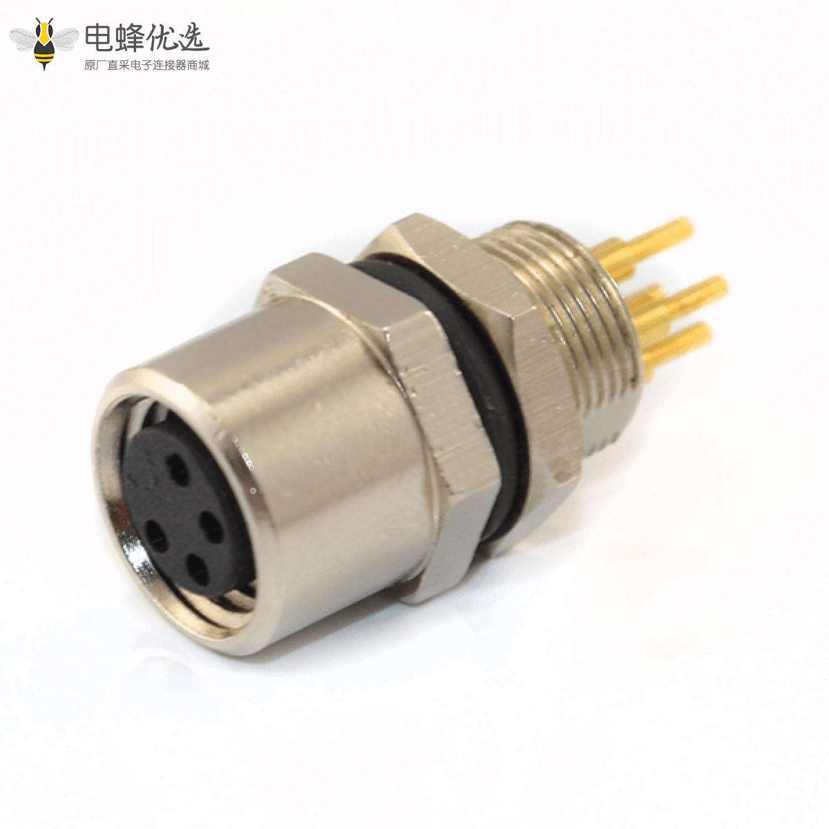 - M8, 4芯, A编码, 板端插座, 母, 后锁板, 直的, 插板, 不带屏蔽 ;