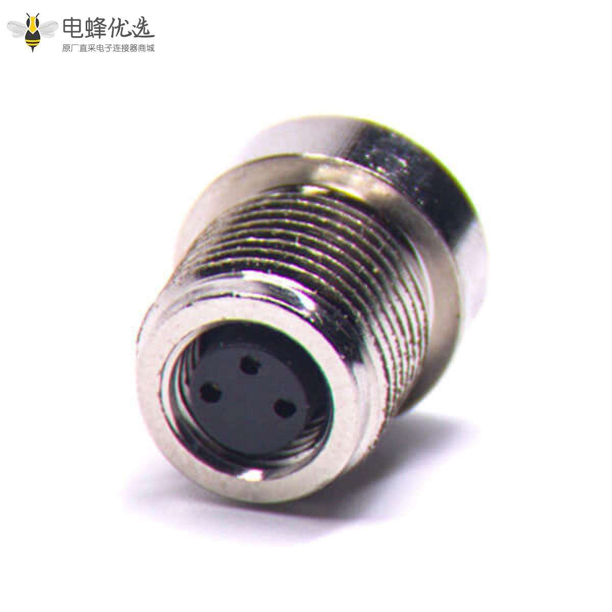 - M8, 3芯, A编码, 板端插座, 母, 前锁板, 直的, 焊线, 不带屏蔽 ;