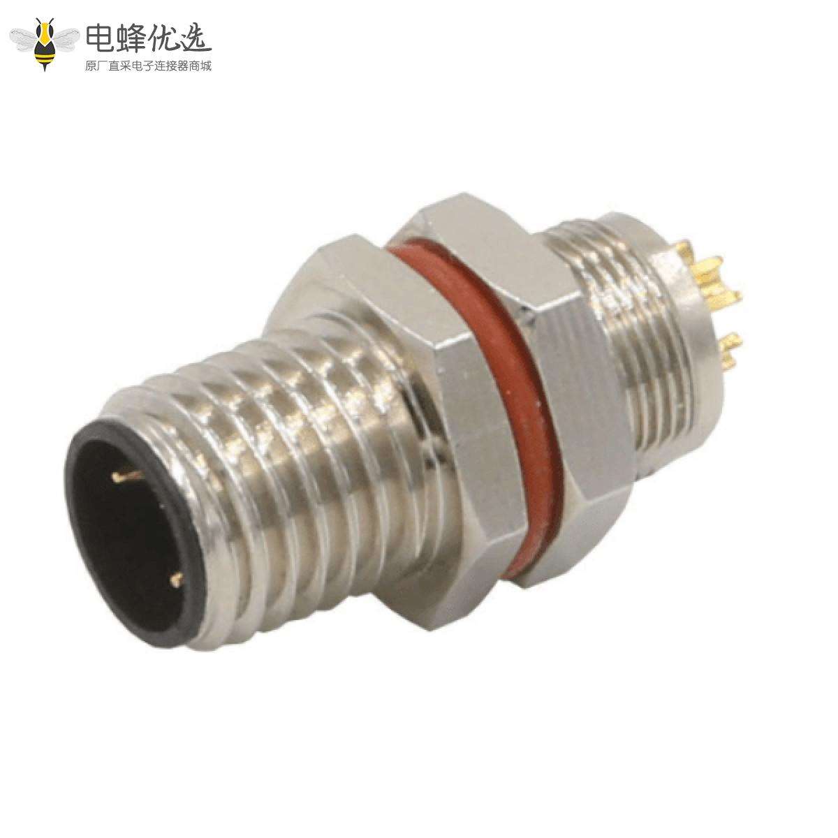 - M8, 3芯, A编码, 板端插座, 公, 后锁板, 直的, 焊线, 不带屏蔽 ;