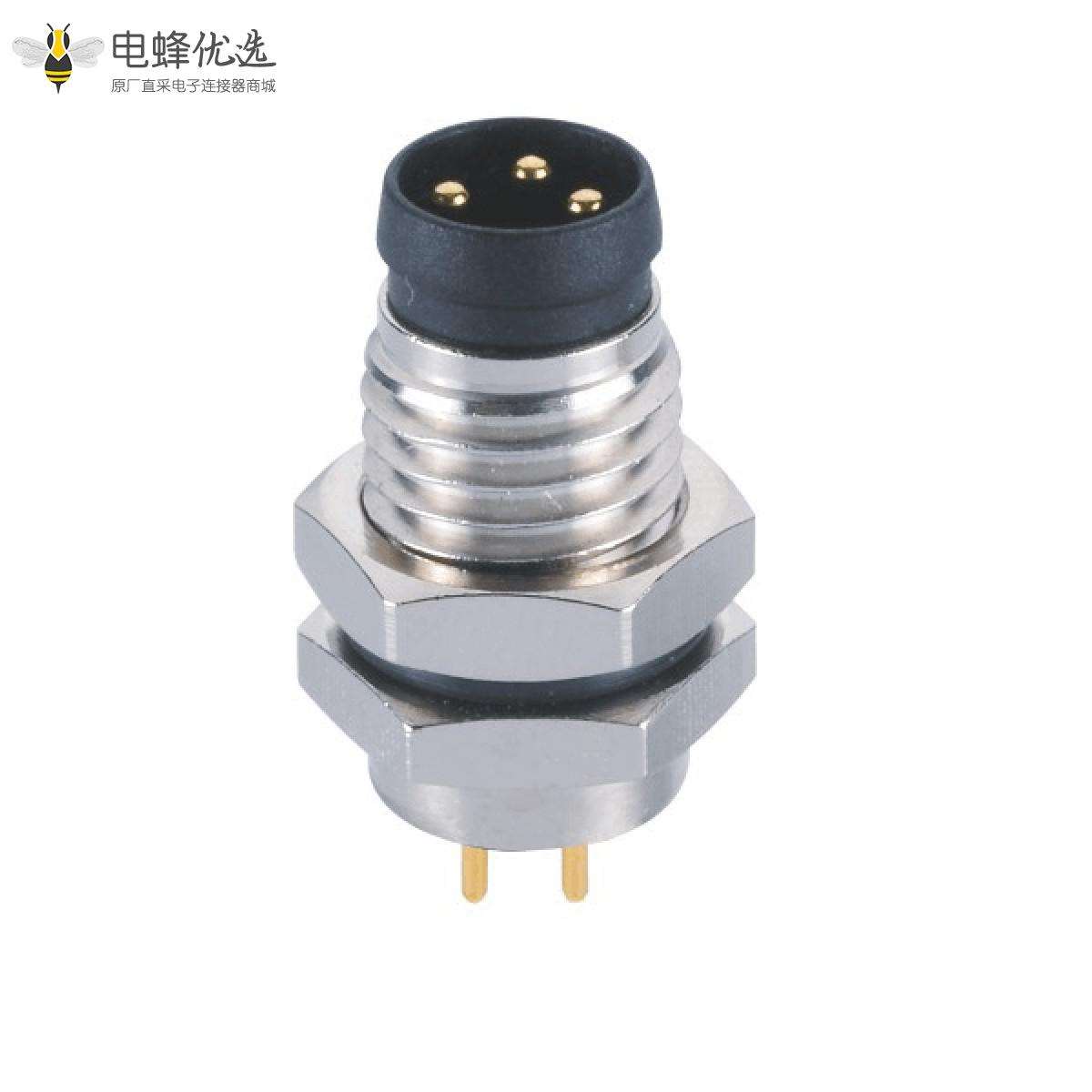 - M8, 3芯, A编码, 板端插座, 公, 前锁板, 直的, 插板, 不带屏蔽 ;