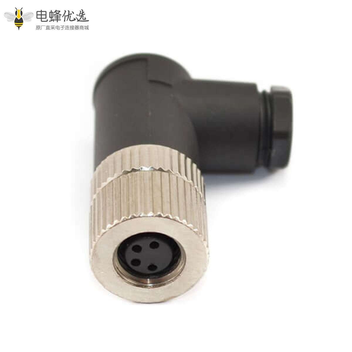 M8, 4芯, A编码, 组装接头, 母, 现场组装式, 弯的, 螺丝锁线, 不带屏蔽 ;