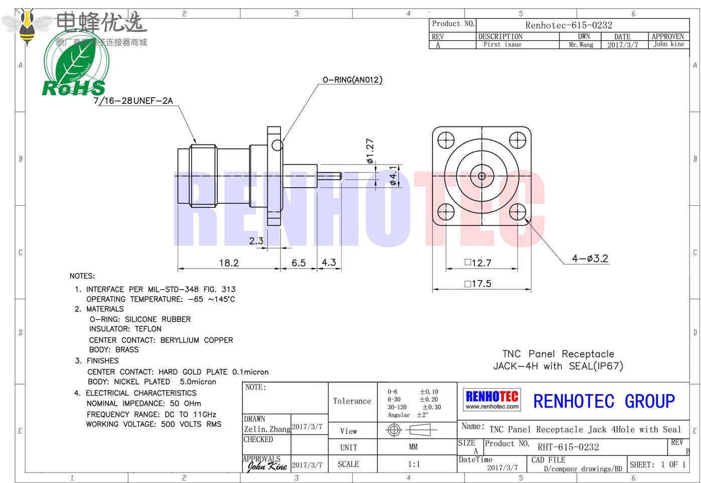 - 高质量原厂出货,30天无忧退换货,产品依照 MIL-C-39012国际标准生产;