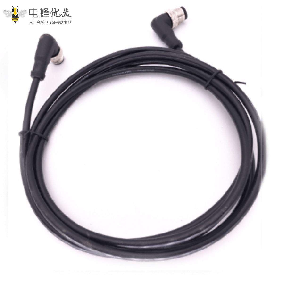 M8, 3芯, A编码, 线束, 公转公, 双边线, 弯转弯, 焊线, 不带屏蔽 ;