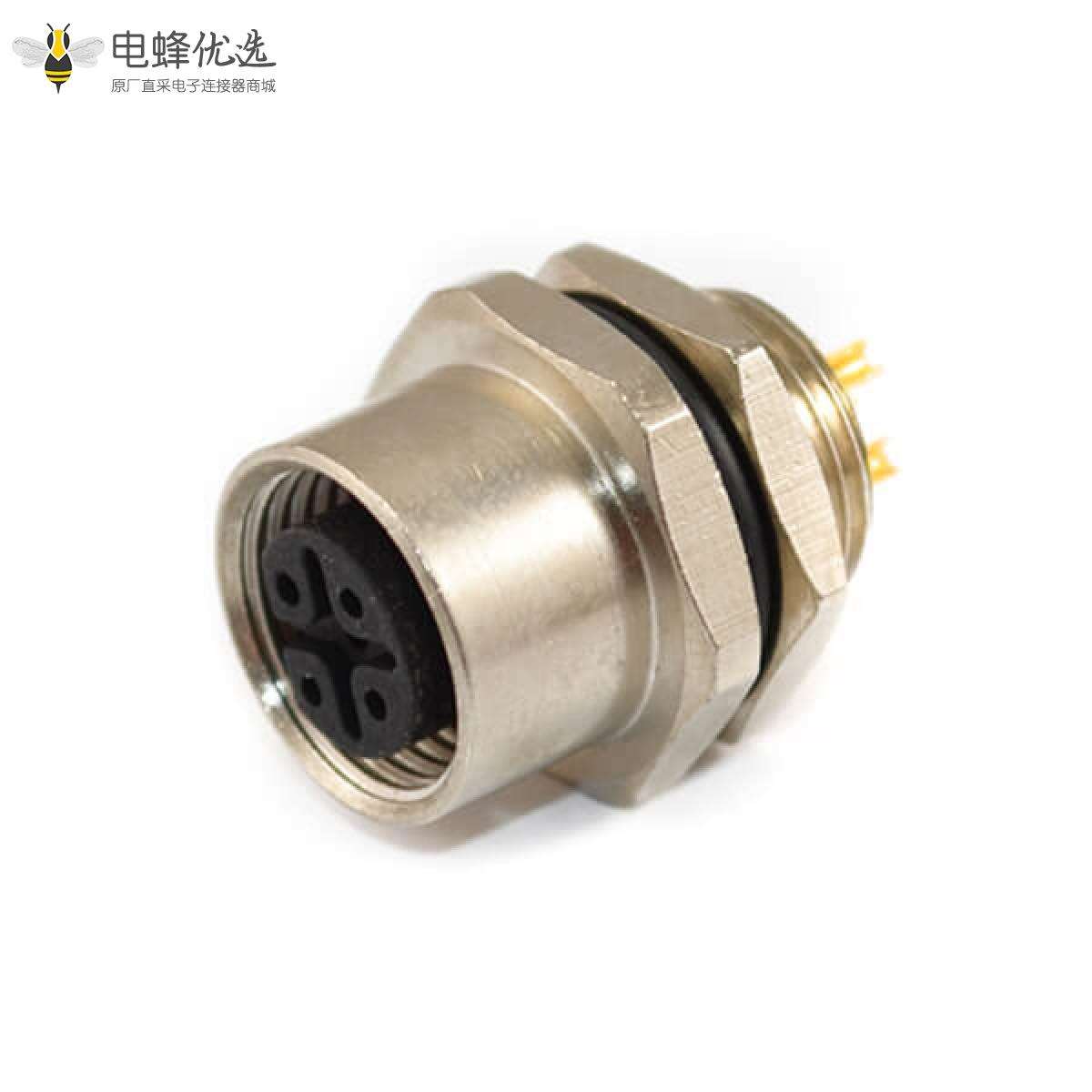 M12,A 编码,板端座子,后锁板,3芯,母,直的,焊线;