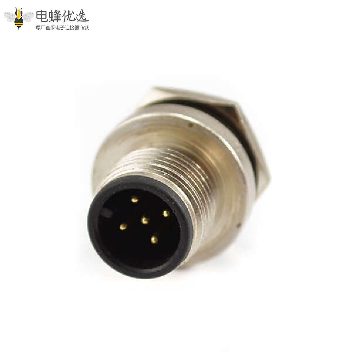 M12,A 编码,板端座子,后锁板,5芯,公,直的,焊线;