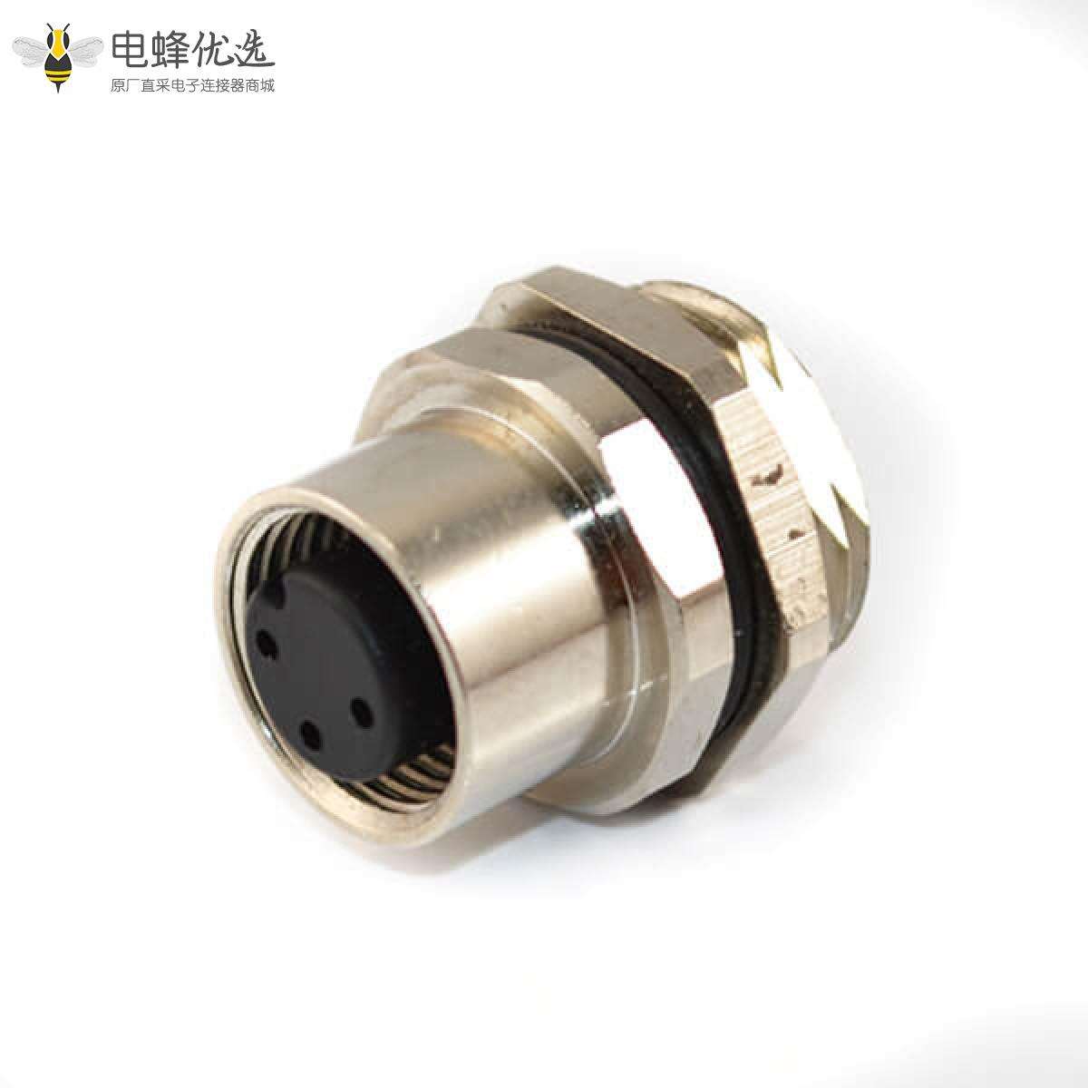M12,A 编码,板端座子,后锁板,4芯,母,直的,焊线;