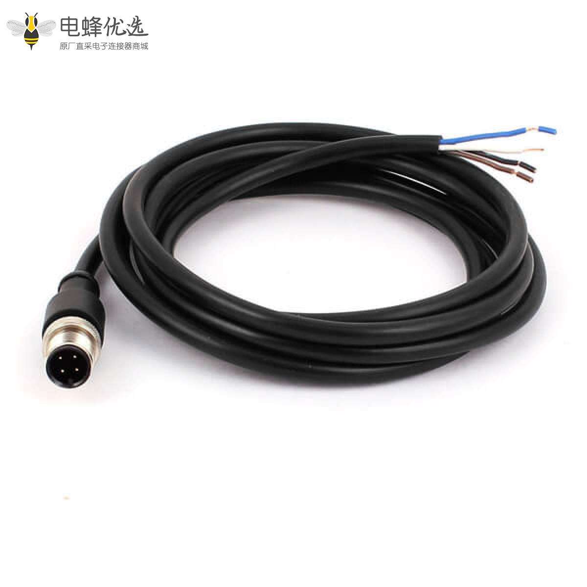 M12,A 编码,线束,4芯,公,直的,焊线,单边,不带屏蔽;