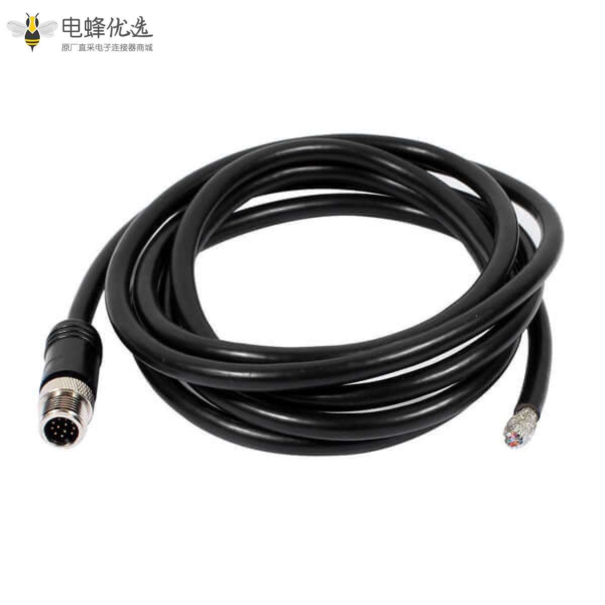 M12,A 编码,线束,12芯,公,直的,焊线,单边,不带屏蔽;