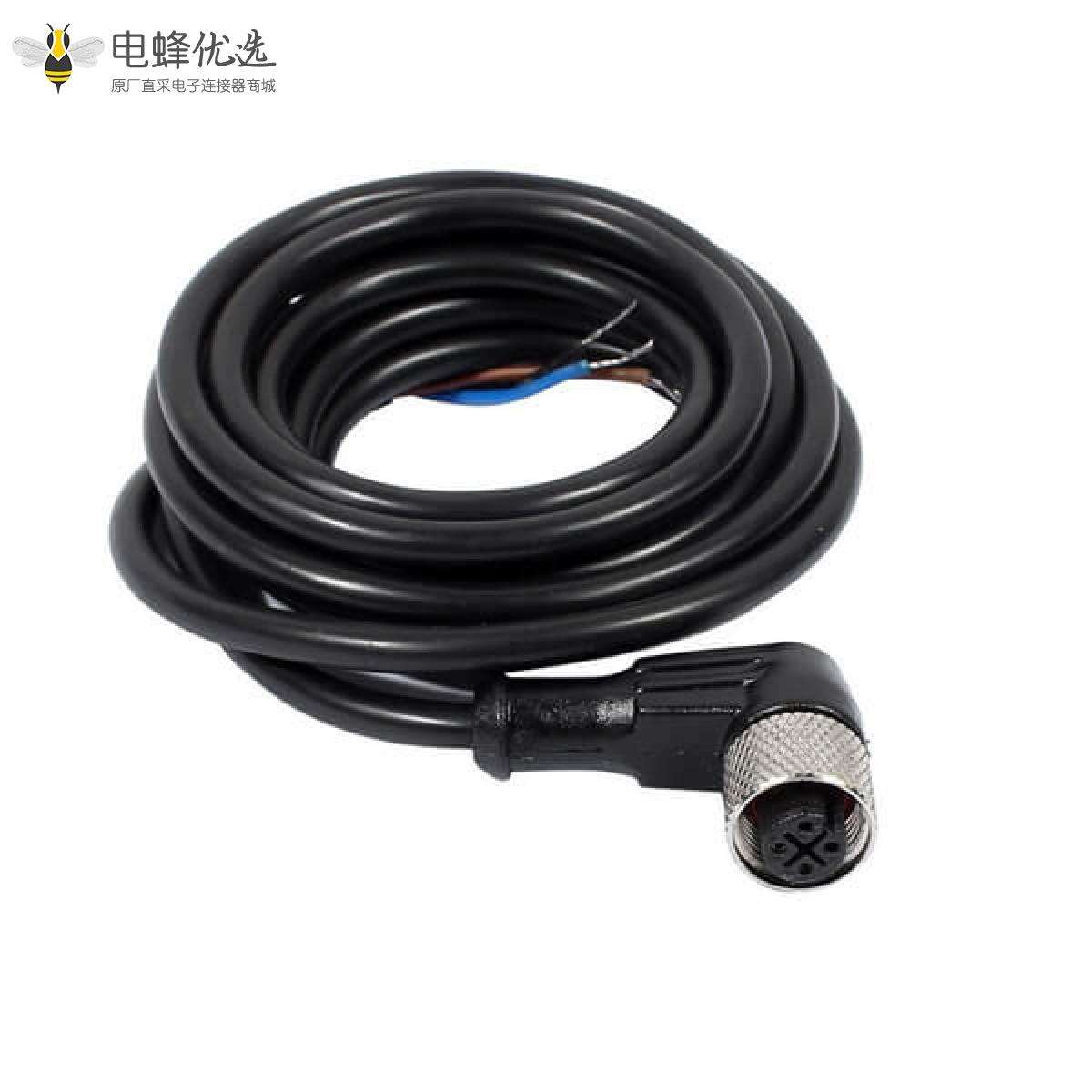 M12,A 编码,线束,4芯,母,弯的,焊线,单边,不带屏蔽;