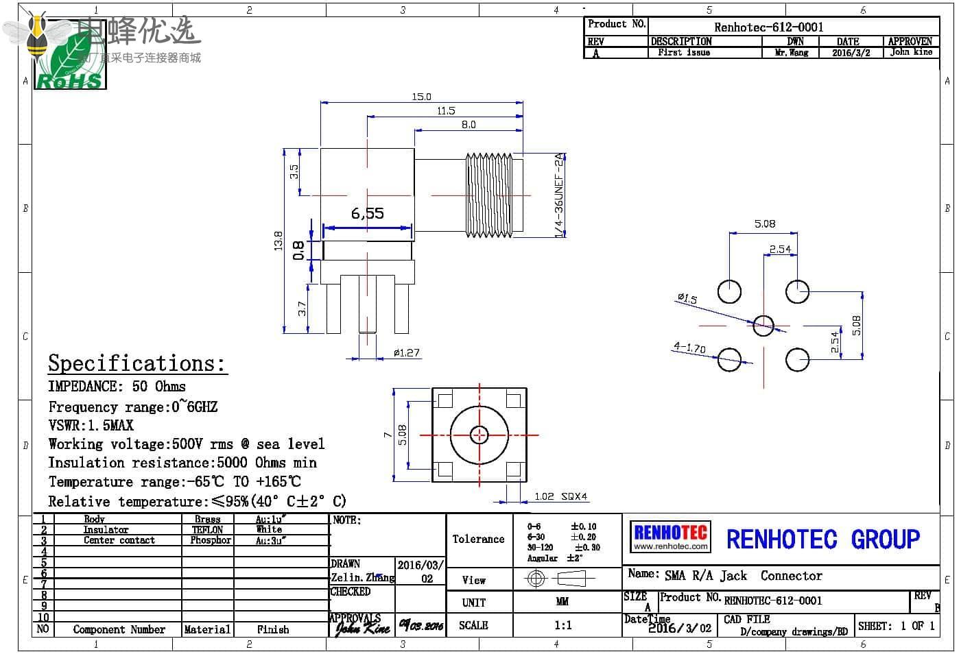 - sma连接器,pcb板,弯插,插孔,母头,50欧;