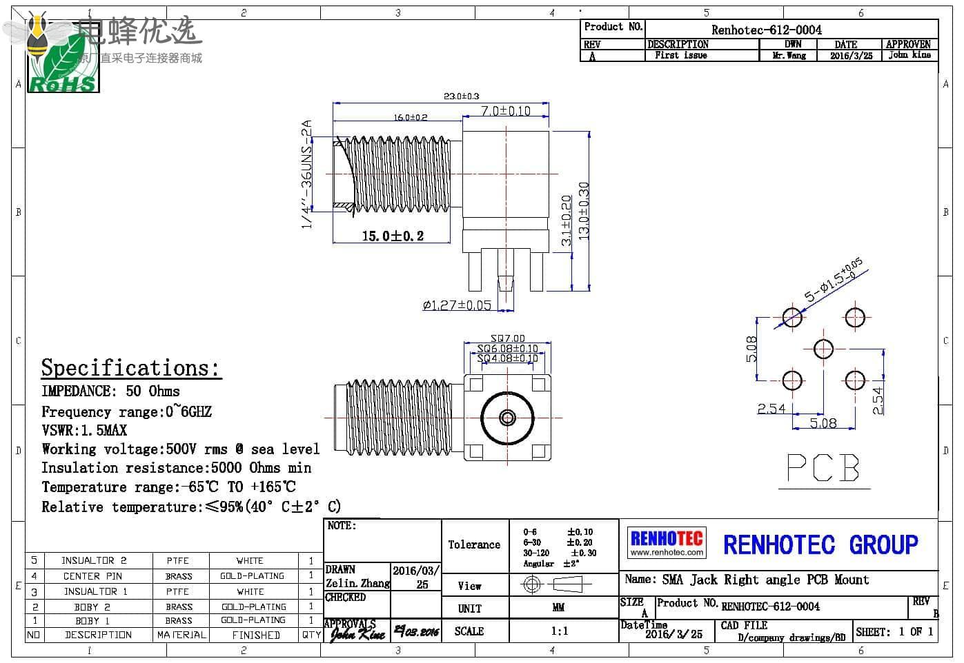 - sma连接器,pcb板,弯插,插孔,母头,50欧;