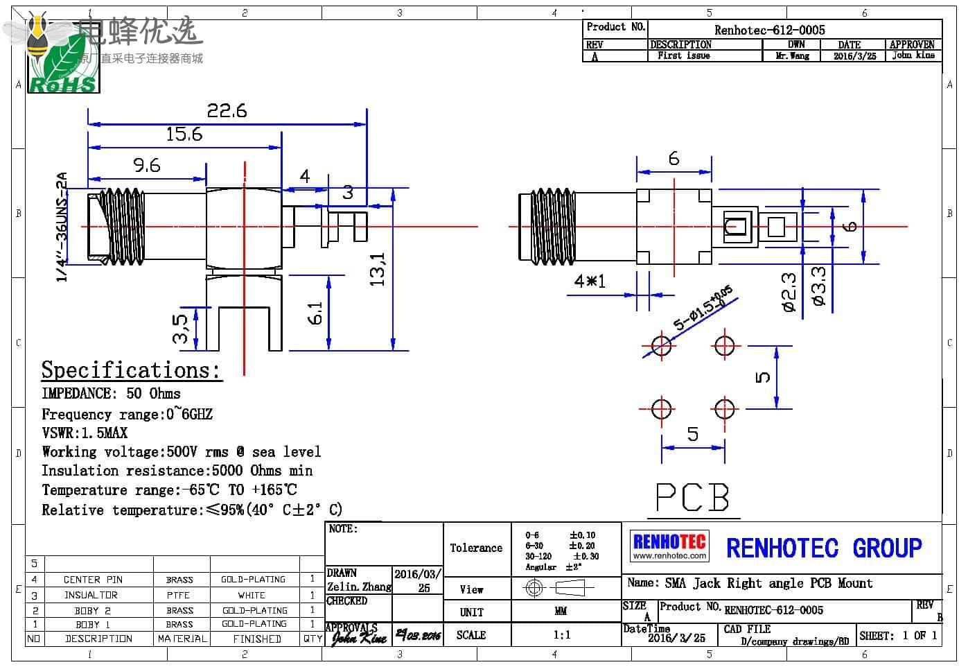- sma连接器,pcb板,弯插,插孔,母头,50欧;