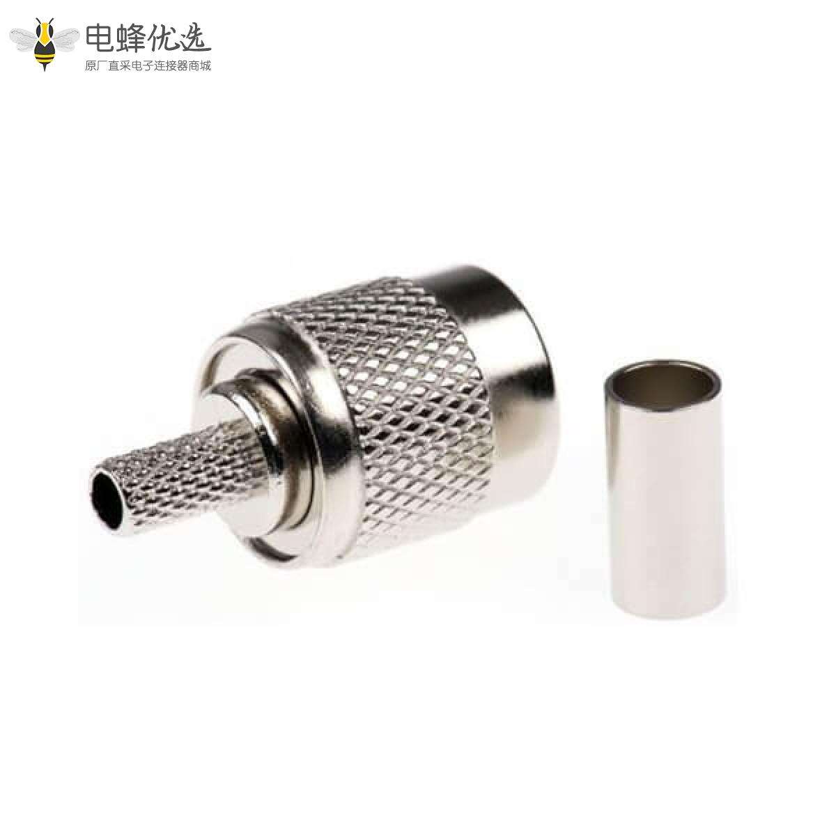 - 公头,直式,压接,电缆安装,镍,RG58C,50Ω,金,黄铜;