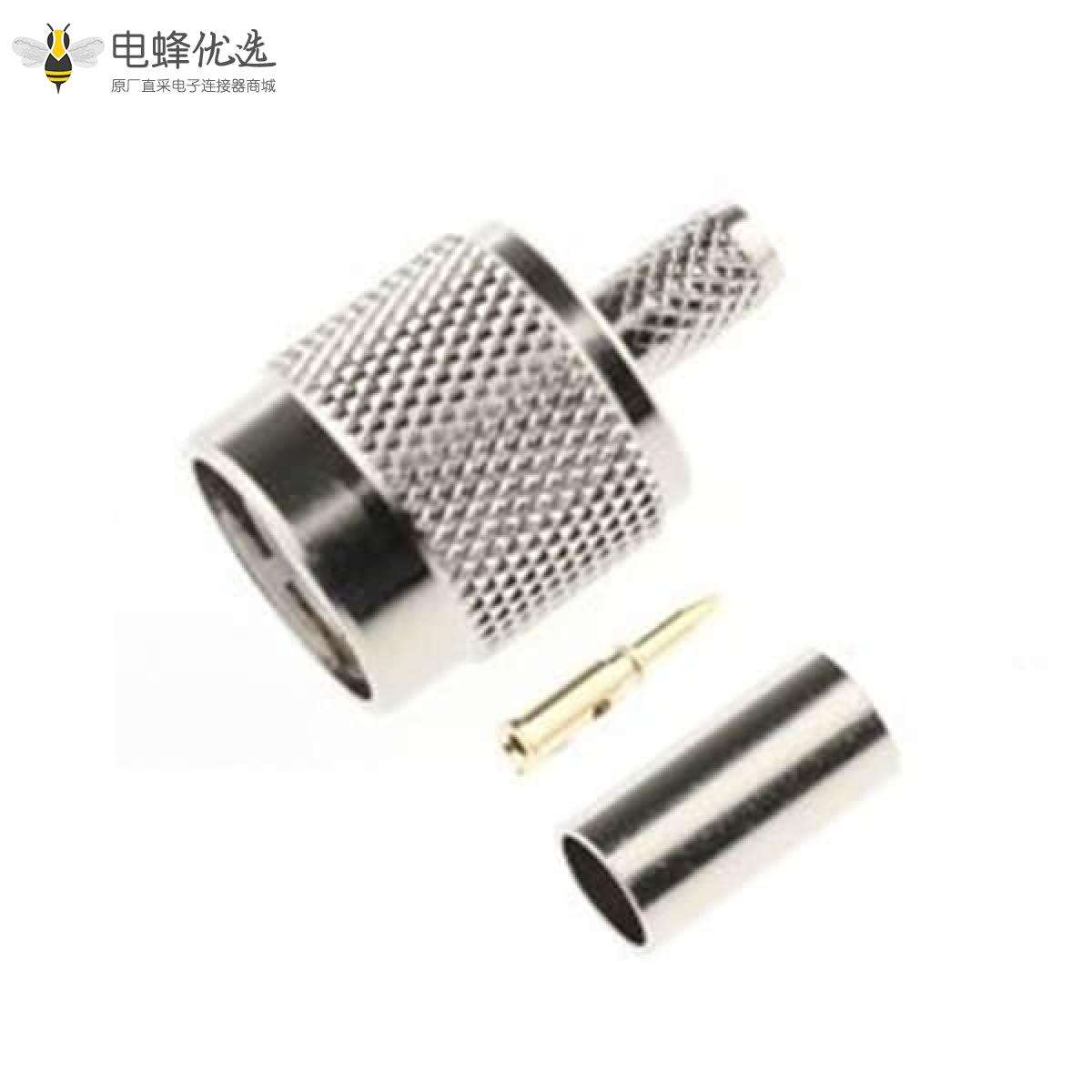 - 公头,直式,压接,电缆,安装,镍,50Ω,黄铜,RG58;