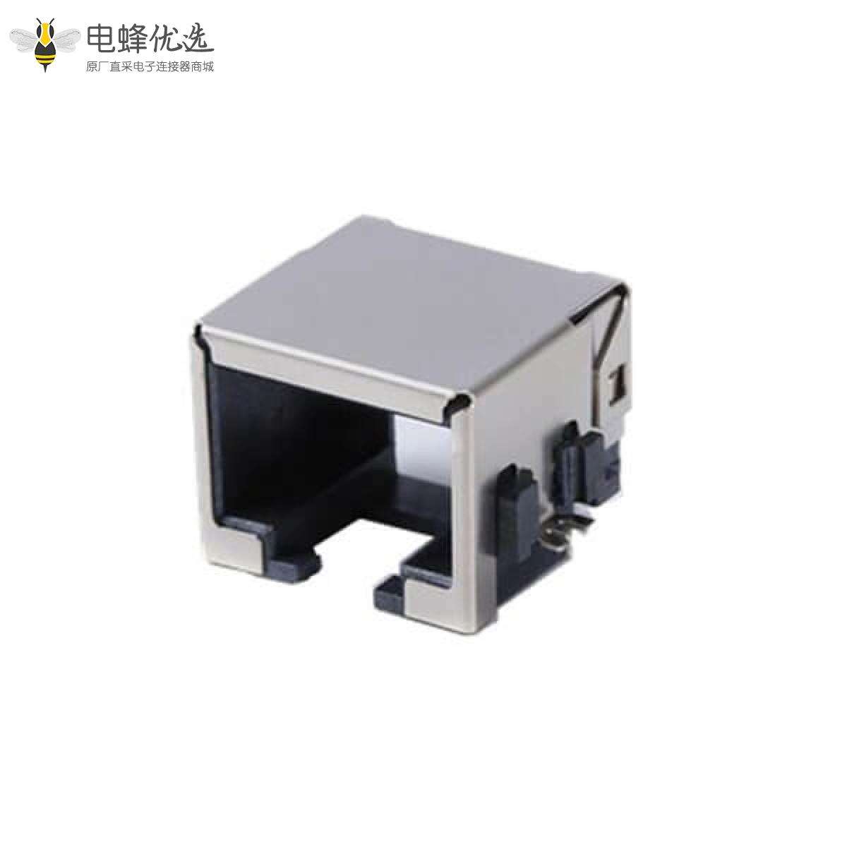 - RJ45连接器,母座,PCB板,8P8C,1*1,单层,单口,沉板贴片式,屏蔽,不带弹片,不带灯,不带滤波器,铜壳,镀镍;