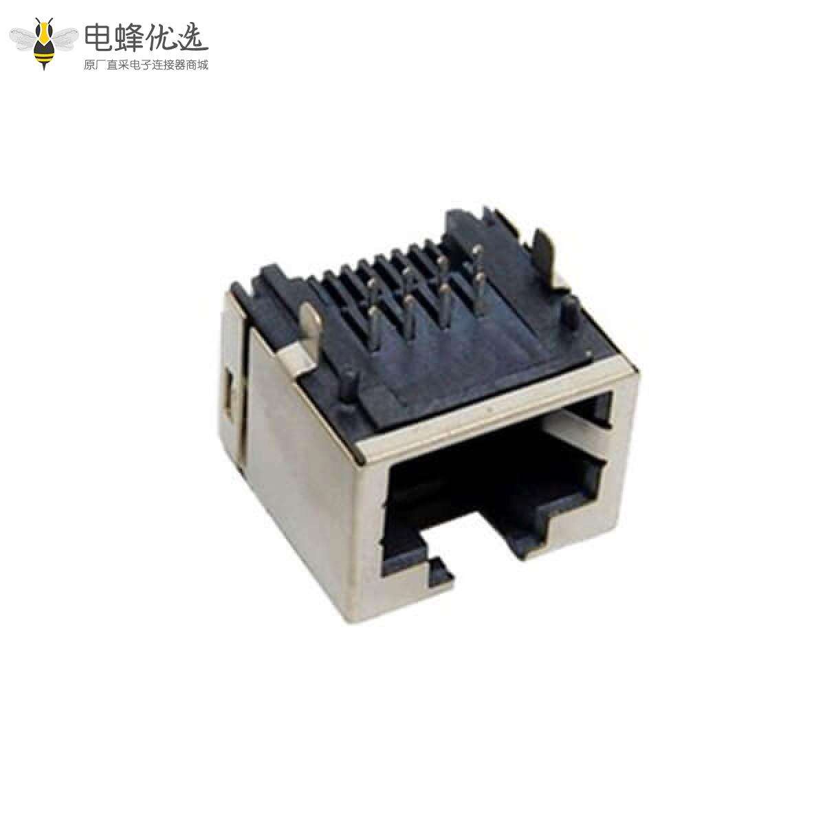 - RJ45连接器,母座,PCB板,8P8C,1*1,单层,单口,弯式,屏蔽,带弹片,不带灯,不带滤波器,铜壳,镀镍;
