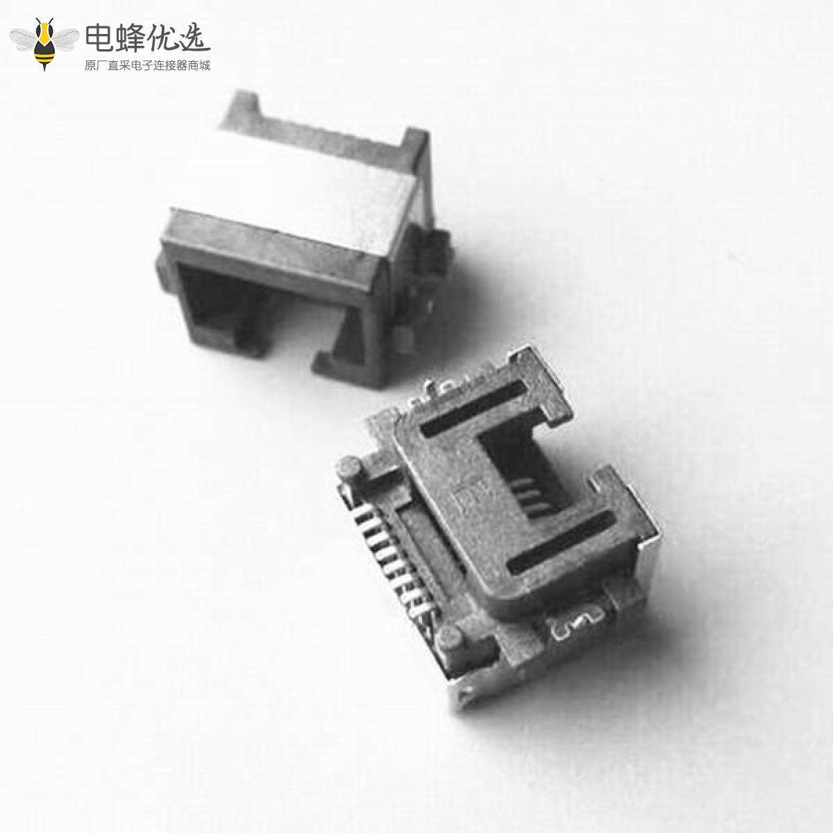 - RJ45连接器,母座,PCB板,8P8C,1*1,单层,单口,弯式,非屏蔽,不带弹片,不带灯,不带滤波器,塑料和铜壳,镀镍;