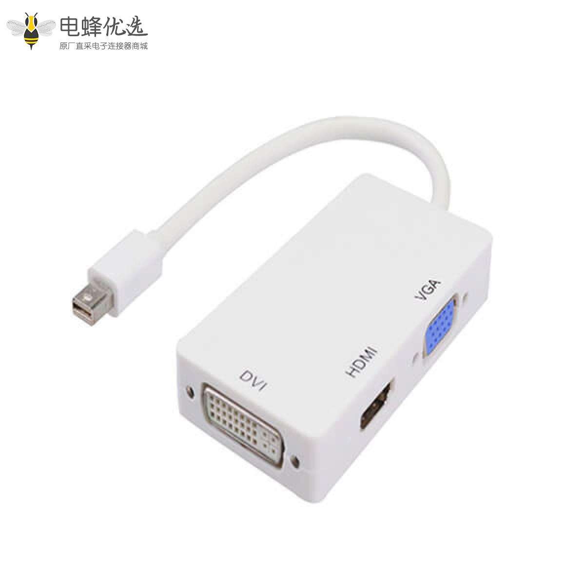 Mini DP转HDMI/DVI/VGA的线,3和1,数据线,公/母,1080p,白色;