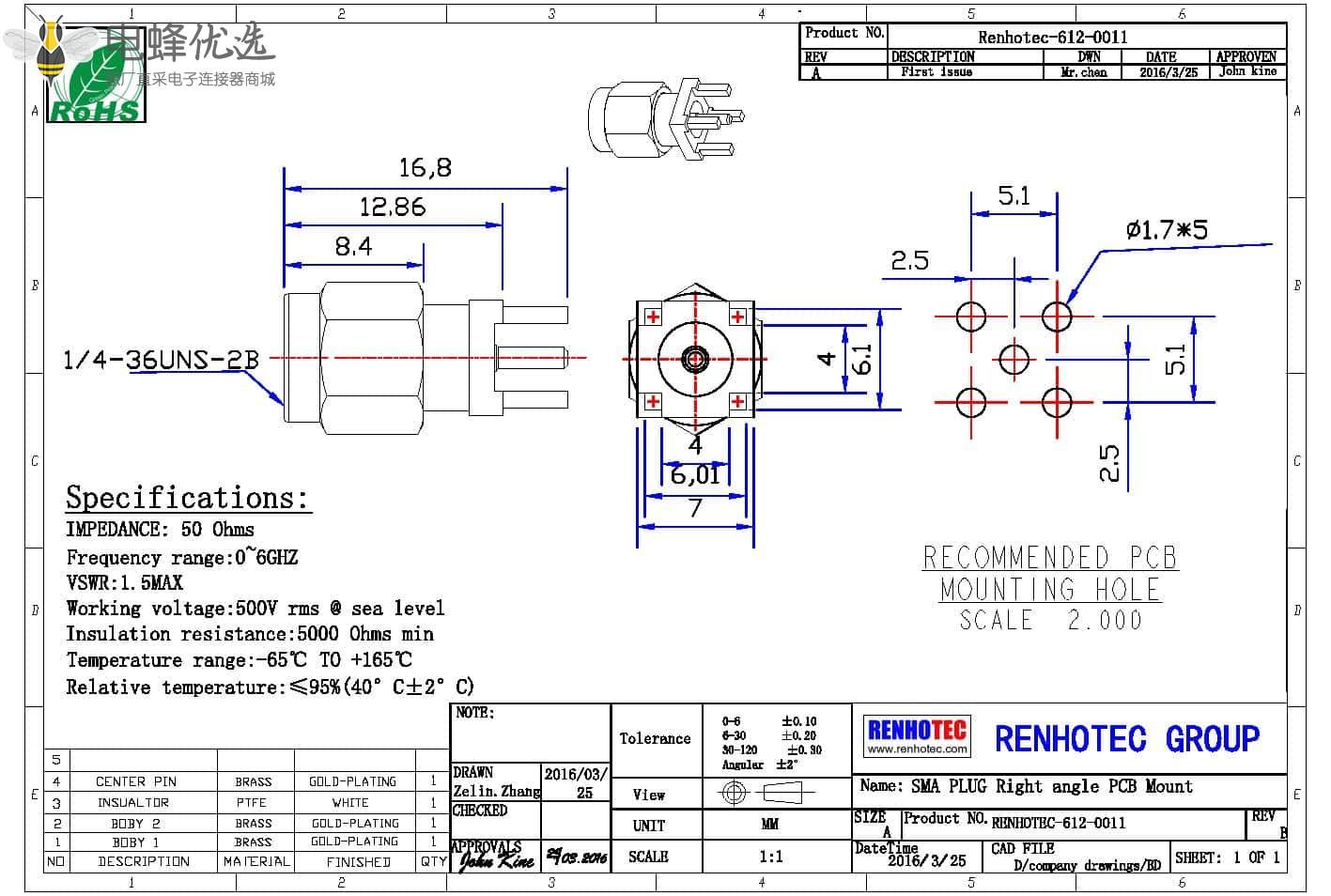 - sma连接器,pcb板,直插,插孔,公头,50欧;