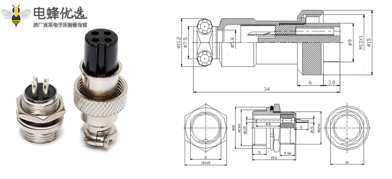 - GX12,常规款,插座,前锁板,4芯,公,直式,面板;