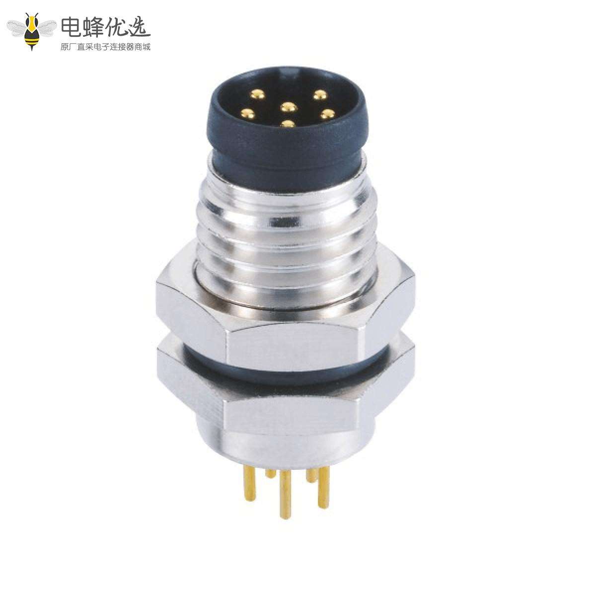- M8, A编码, 6芯,板端插座, 公, 直头, 接PCB板, 前锁板;