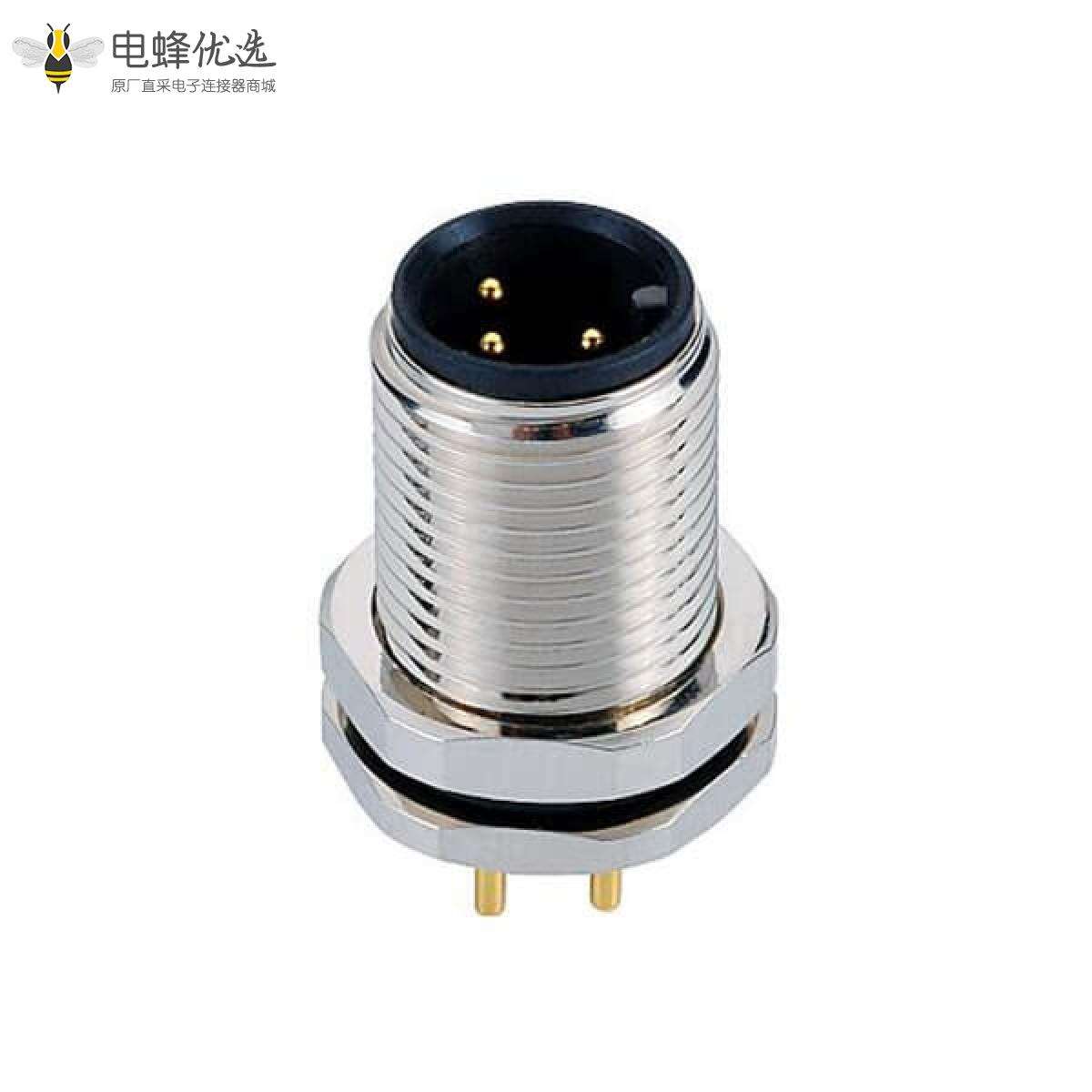 M12,A编码,板端座子,前锁板,3芯,公,直式,插板;
