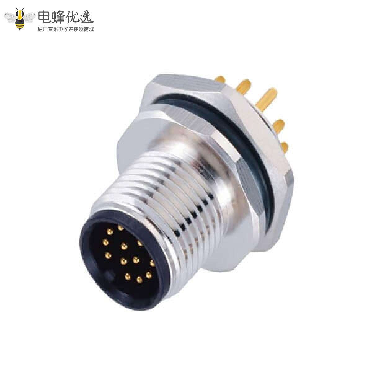 M12,A编码板端座子,后锁板,12芯,公,直式,插板;