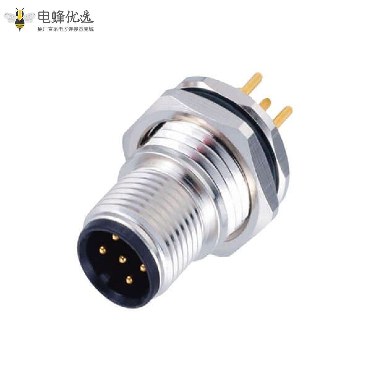- M12,A编码,板端座子,前锁板,5芯,公,直式,插板;