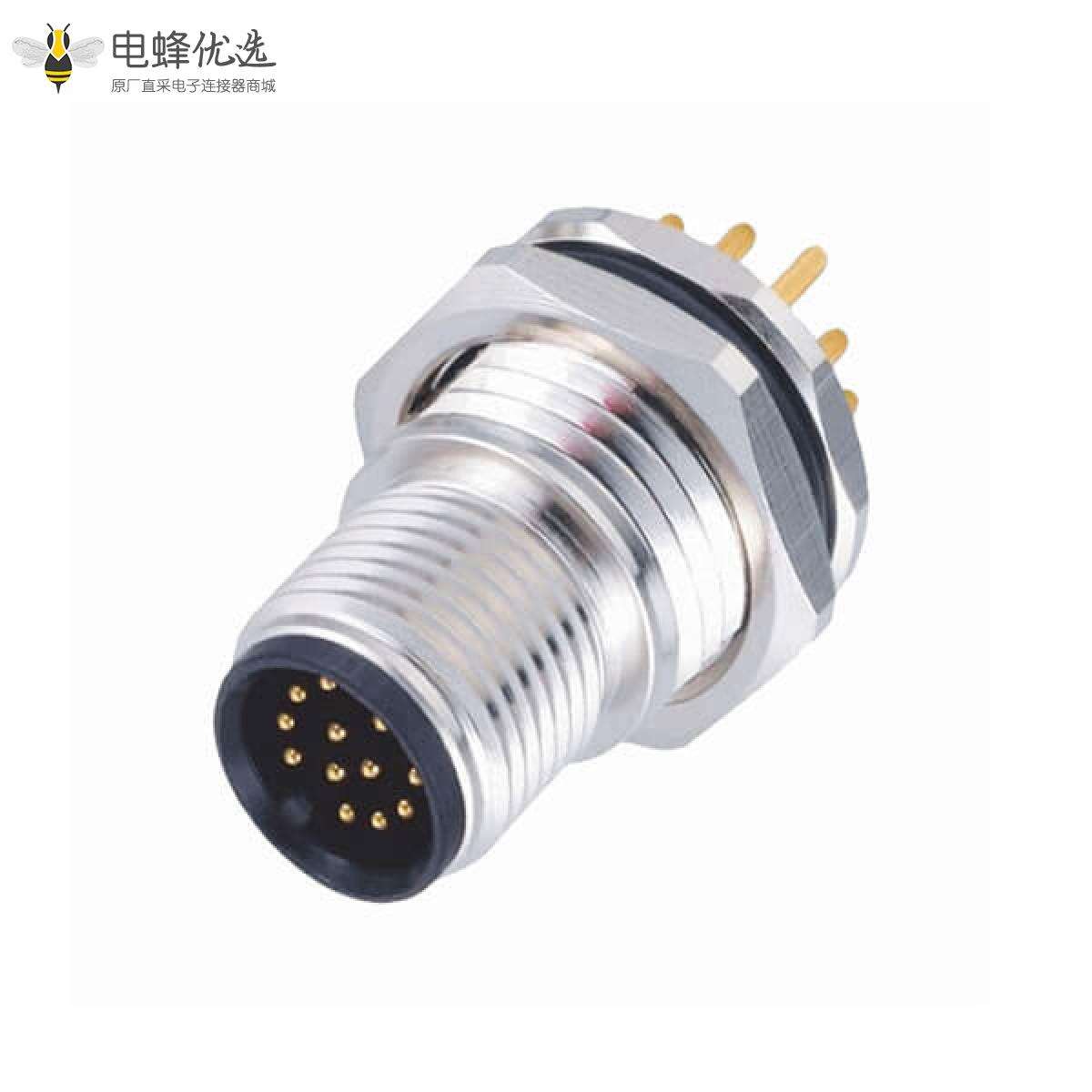 M12,A编码,板端座子,前鎖板,12芯,公,直式,插板;