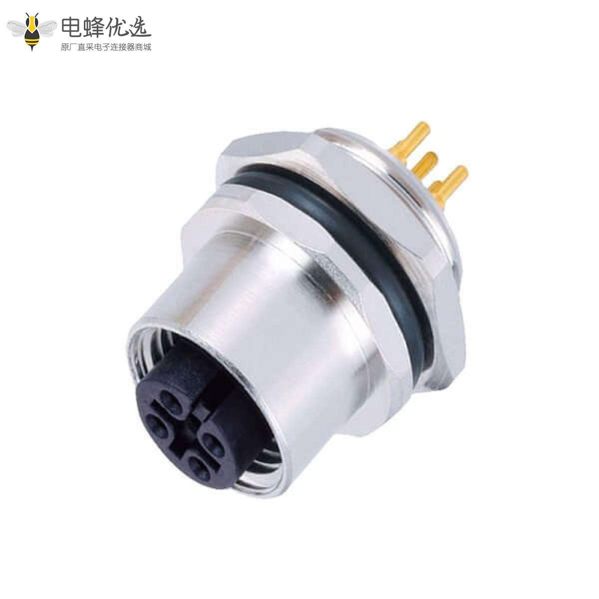 M12,A编码,板端座子,后锁板,5芯,母,直式,插板;