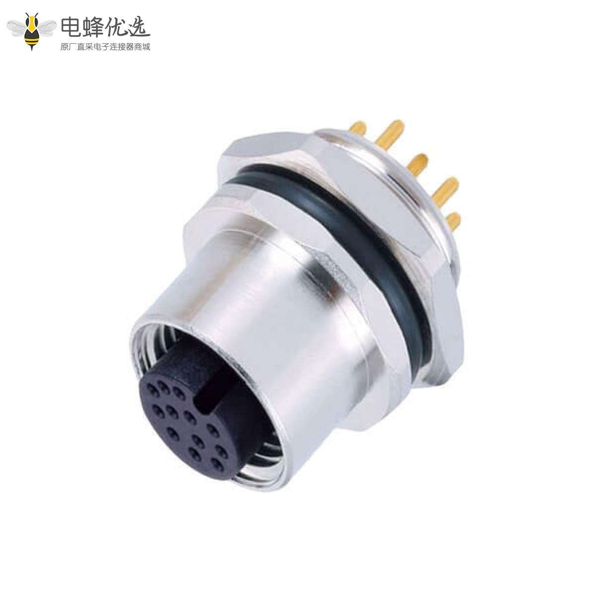 M12,A编码板端座子,后锁板,8芯,母,直式,插板;