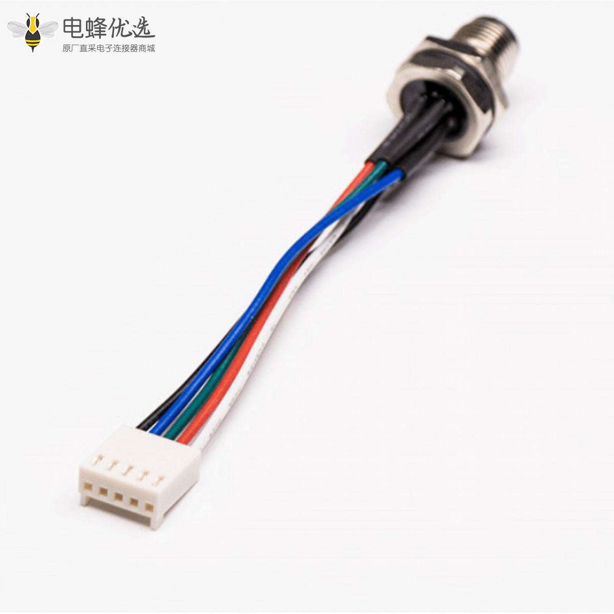 M8, B编码, 5芯,板端插座, 公, 直头, 线材, 焊接式, 前锁板;