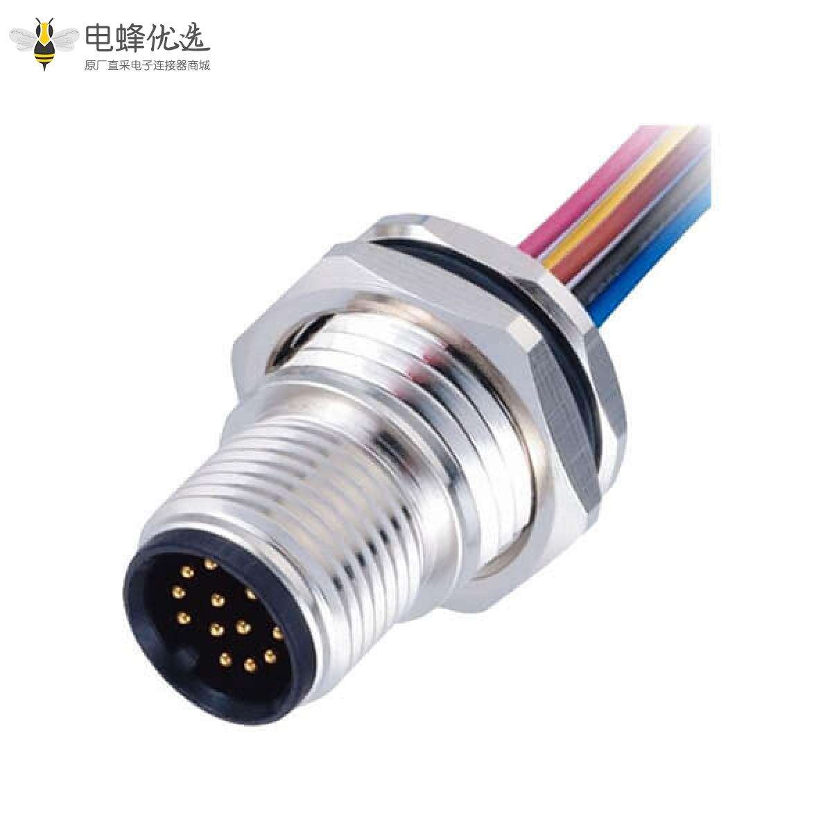 M12,A 编码,板端座子,前锁板,12芯,公,直式,焊线;