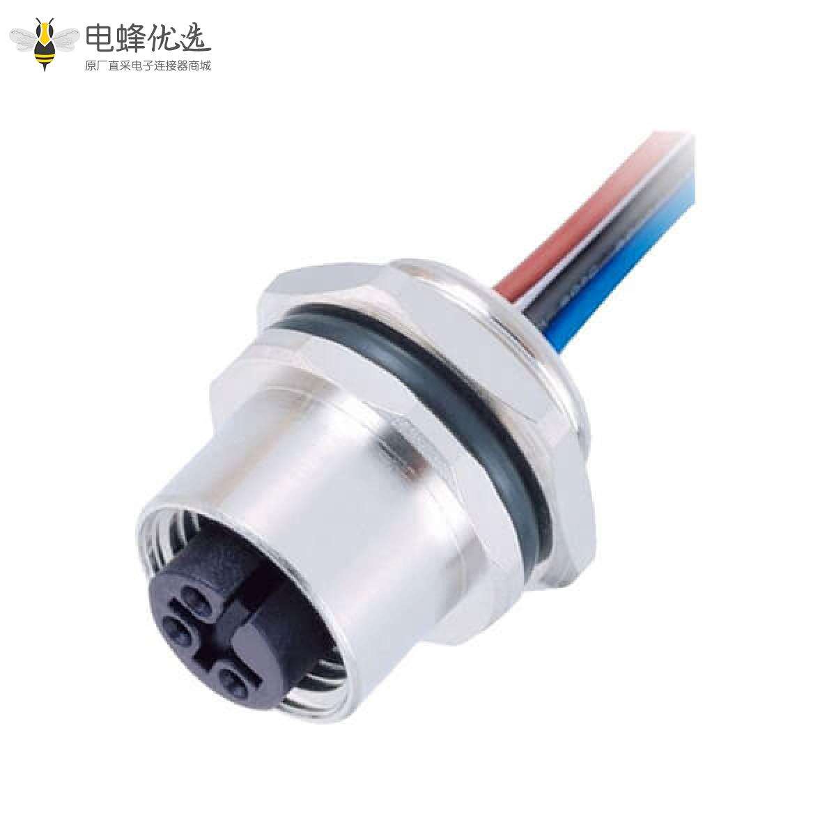 M12,A 编码,板端座子,后锁板,3芯,母,直式,焊线;
