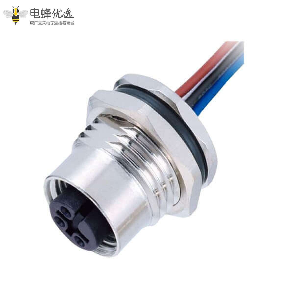 M12,A 编码,板端座子,前锁板,3芯,母,直式,焊线;