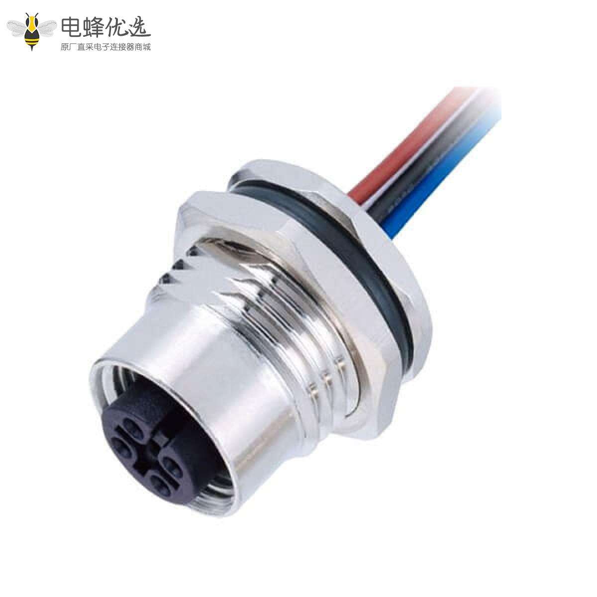 M12,A 编码,板端座子,前锁板,5芯,母,直式,焊线;