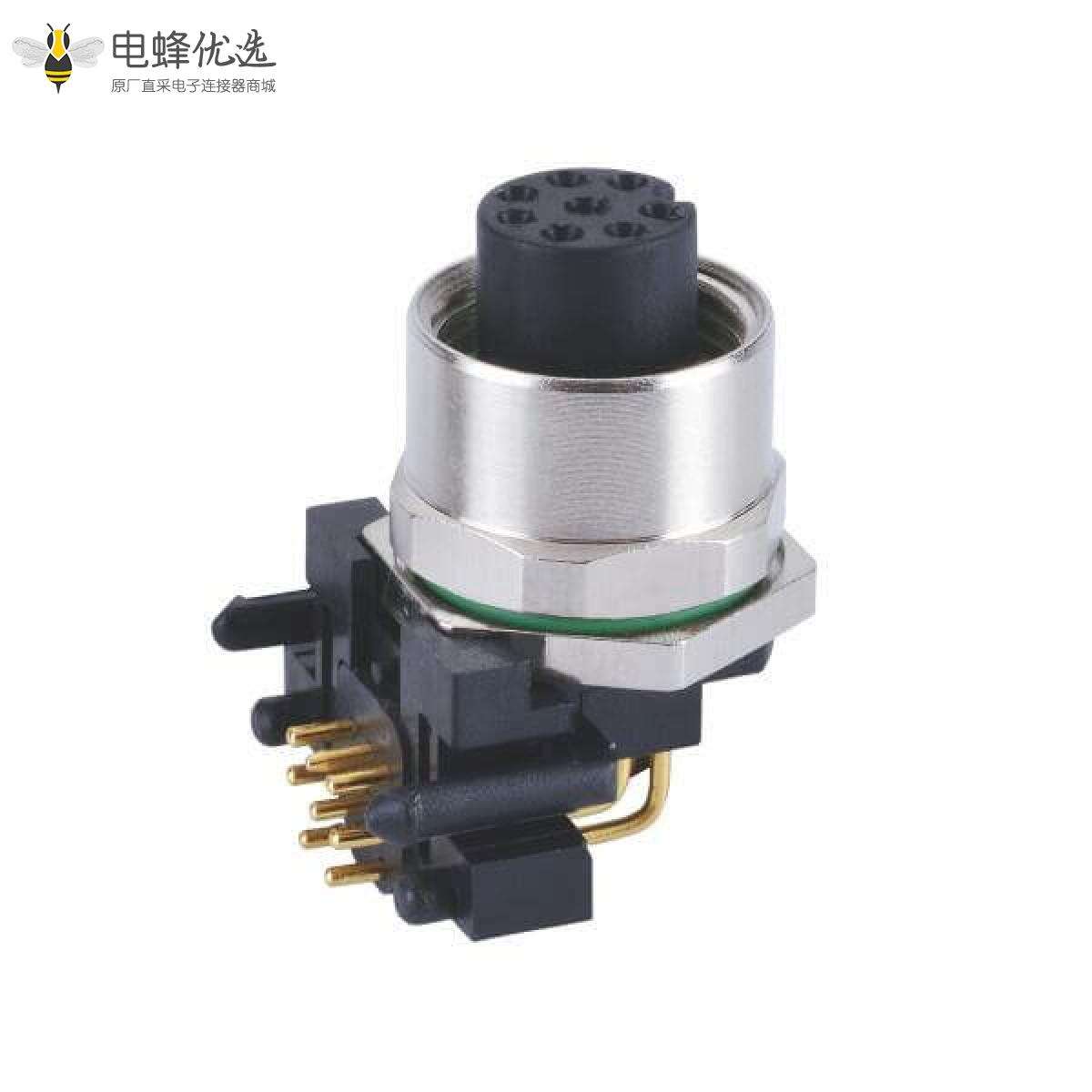 M12,A 编码,板端座子,8芯,母,弯式,PCB;