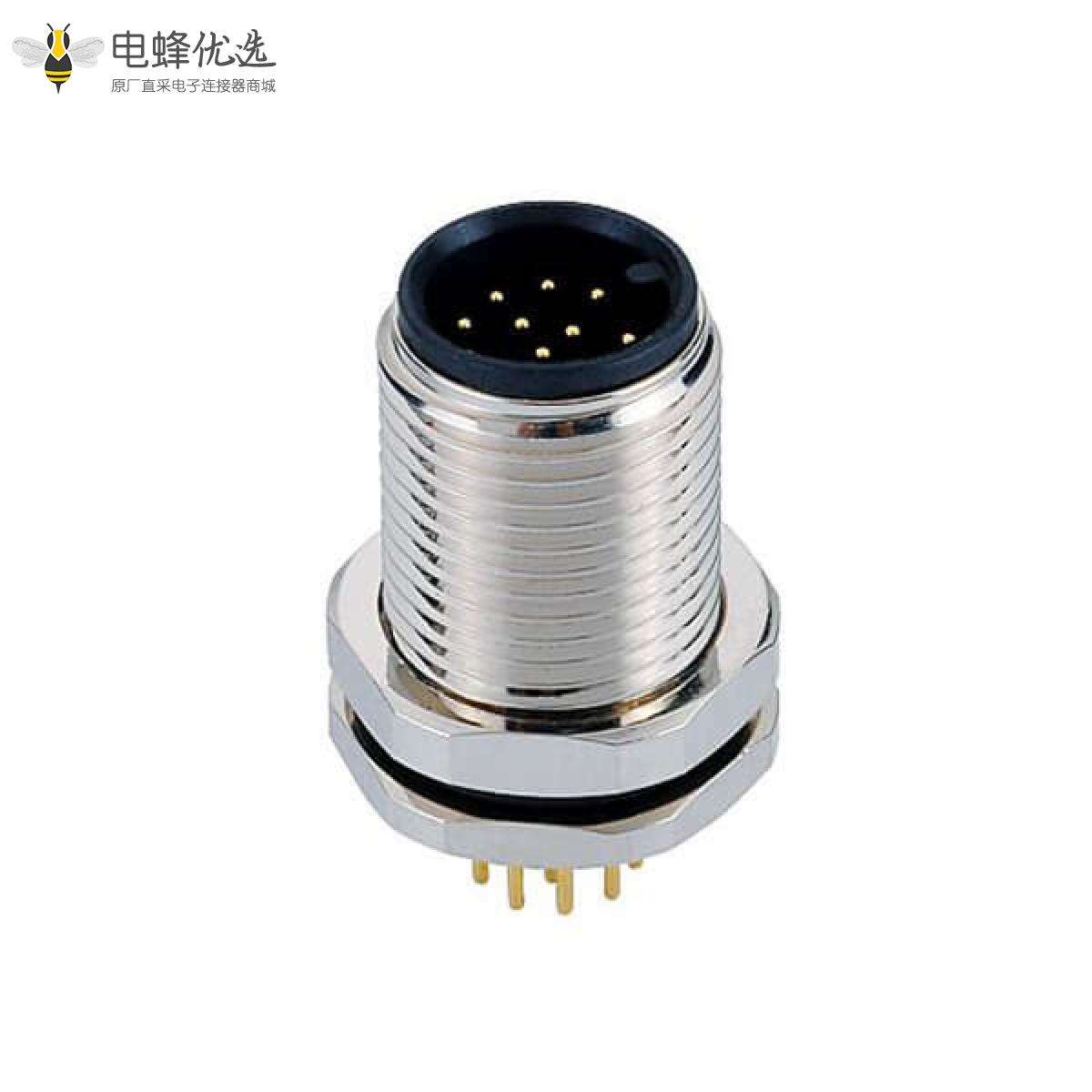 M12,A 编码,板端座子,前锁板,12芯,公,直式,PCB;