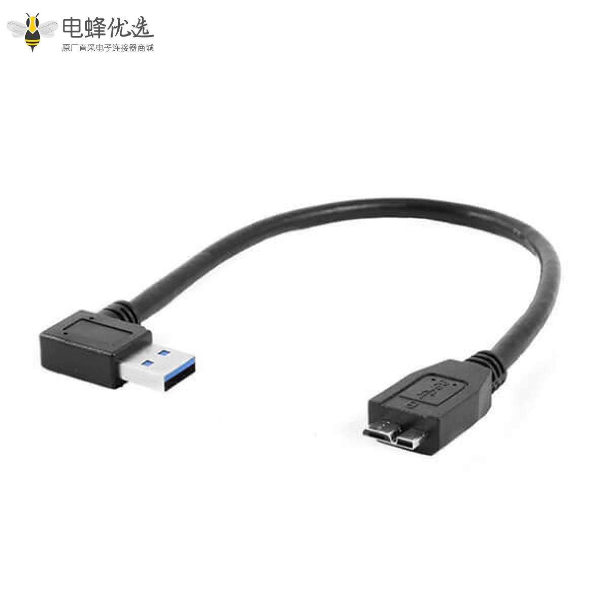 USB线材,USB 3.0, A型转Micro B,公转公,压铸,0.5米,右角90度;