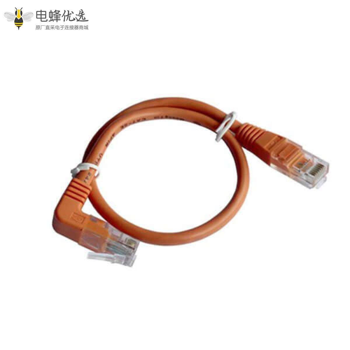 - RJ45延长线,公转公,RJ45接口,弯式,塑料+铜,橘色,30CM;