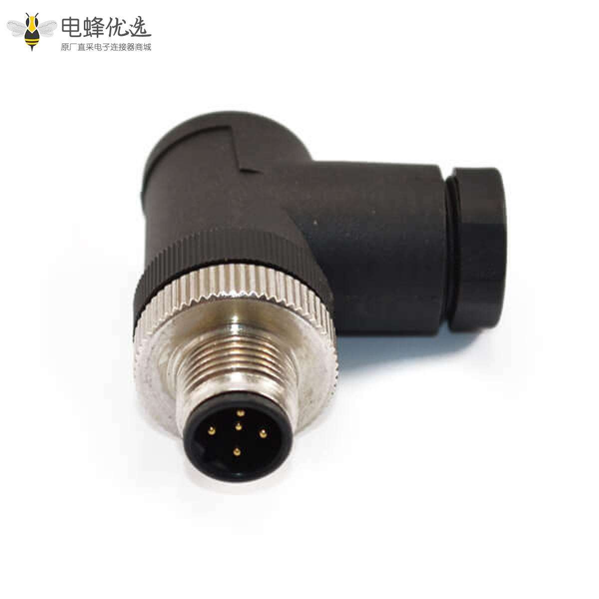 M12,组装接头,B Code,5芯,公头,弯式,接线,螺丝锁线,不带屏蔽;