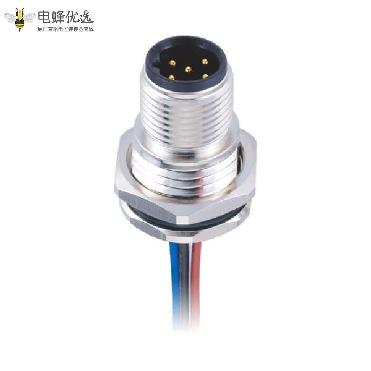 M12,板端插座,B Code,5芯,直式,公头板端,焊线,前锁板;