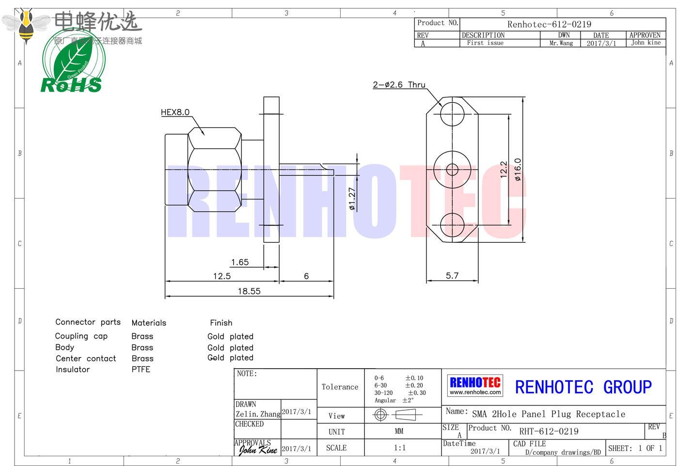 - sma连接器,直式,公头,2孔法兰,面板安装;