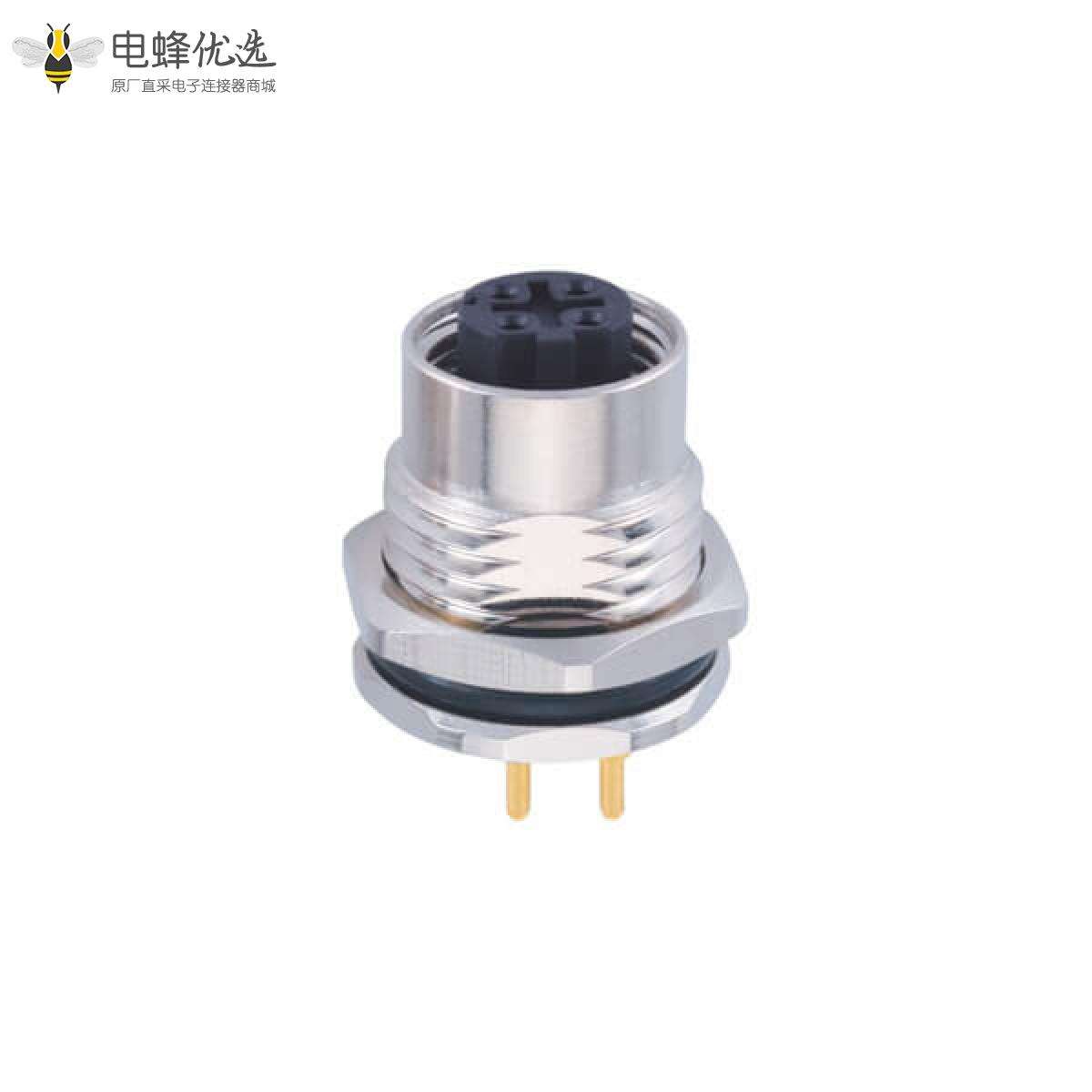 M12,板端插座,D Code,4芯,直式,母头板端,焊线,前锁板;