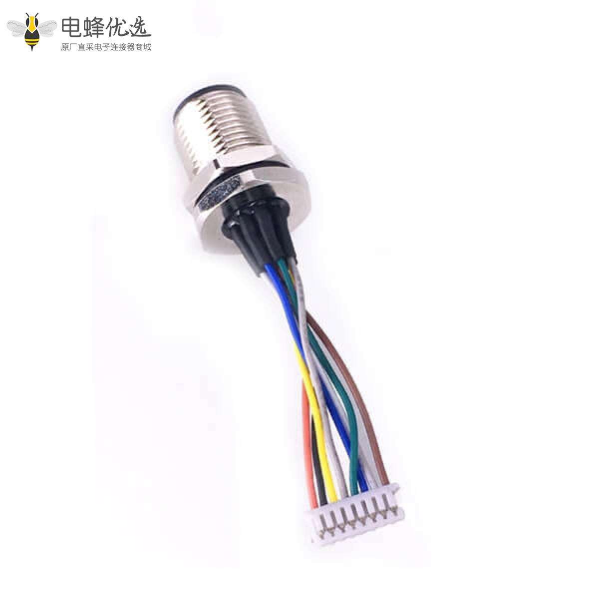 M12,板端插座,A Code,8芯,直式,公头板端,焊线,前锁板;